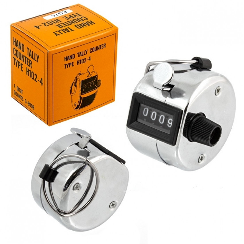 Přesné sledování početných operací je zajištěno tímto ručním přístrojem. Nikdy se nepřepne samo, protože na tlačítko, které mění počet, je třeba vyvinout určitou sílu. Je skladný, s pochromovaným kovovým pouzdrem a může počítat až do 9999.