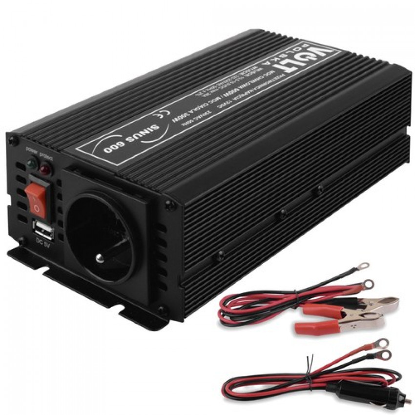 Elektronický invertor SINUS 600 12V slouží k napájení elektrických zařízení vyžadujících střídavé napětí 230V z baterií a autoinstalací stejnosměrným napětím 12V. Je ideální pro vozidla a místa, kde není možnost přímého připojení k elektrické síti.