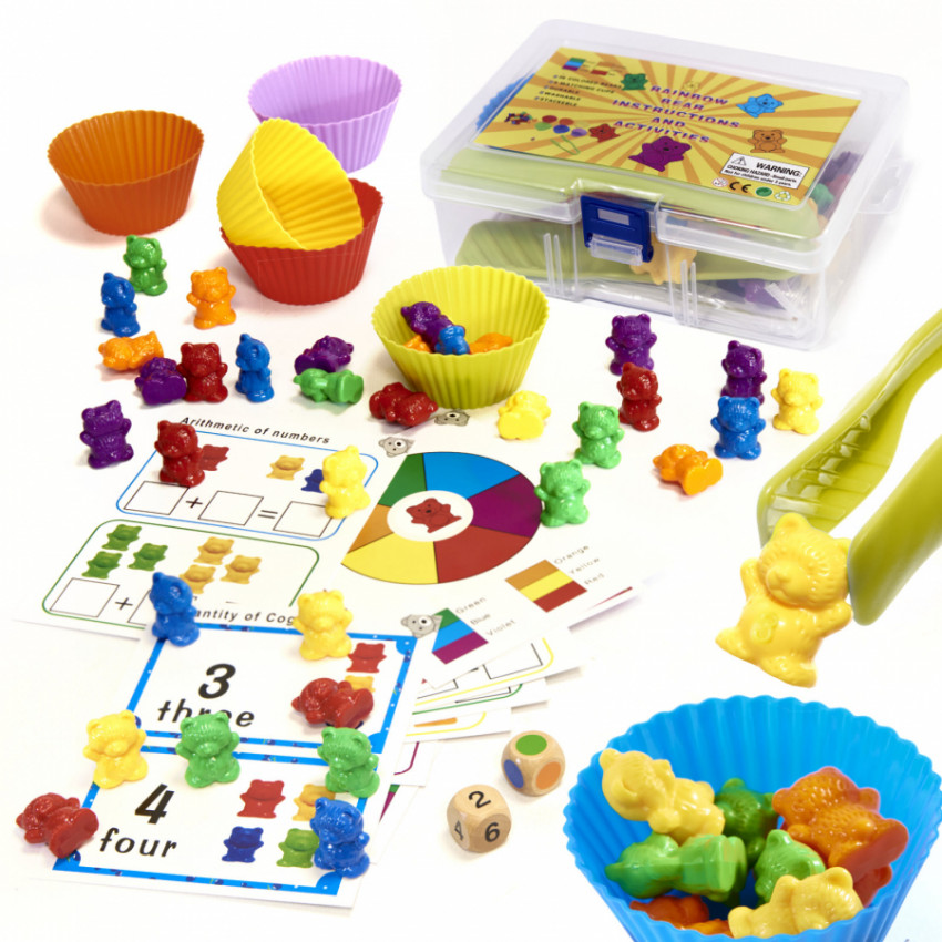 Roztomilé barevné vzdělávací medvídci ukradnou srdce každého dítěte a povzbudí ho k objevování světa čísel a matematických operací. Rozmanitost forem hry přiměje každé dítě najít si to své. Nádherná souprava, která zabaví i poučí!