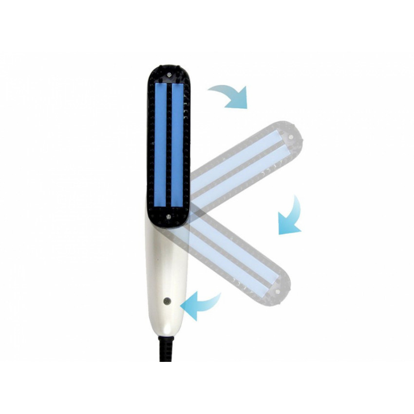 Je bezpečné ho používat díky překrytí, které zabraňuje popáleninám a funguje také jako tvarovací hřeben. Hřeben je pohodlně skladovatelný, dá se rychle složit a uložit do tašky nebo batohu.