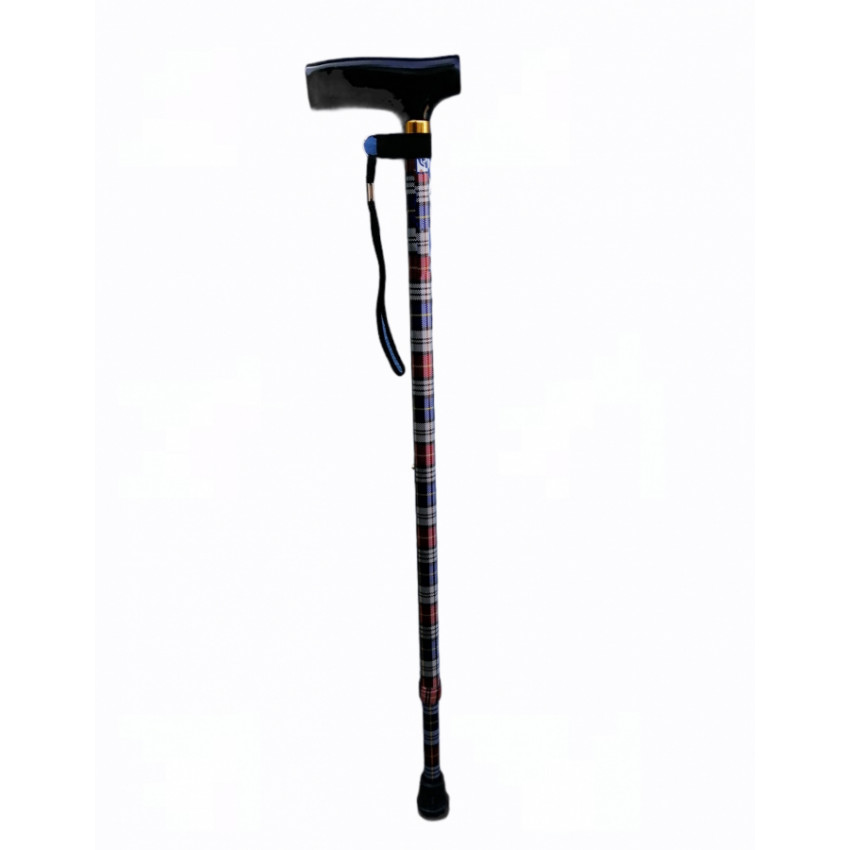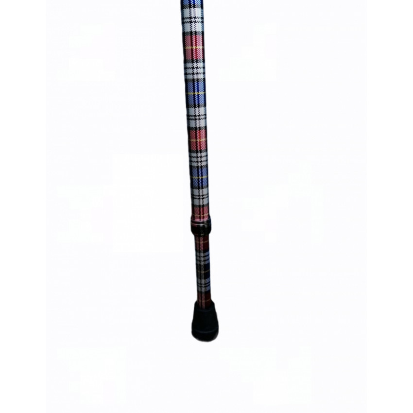 Chodící hůl se doporučuje pro pacienty se sníženou pohyblivostí, kteří potřebují pomoc a podporu při chůzi. Také se může používat jako pomůcka při udržování rovnováhy po zraněních dolních končetin nebo trupu. Má gumové (protiskluzové) zakončení, které zajišťuje tiché a bezpečné používání. Hůl je vyrobena z vysoce kvalitního hliníku. Rukojeť poskytuje pohodlné uchopení hole. Hůl disponuje zajímavým tzv. tartanovým vzorem. Před každým použitím se ujistěte, že je výrobek stabilní a pevný, a že nepřekračuje maximální povolenou zátěž (100 kg).