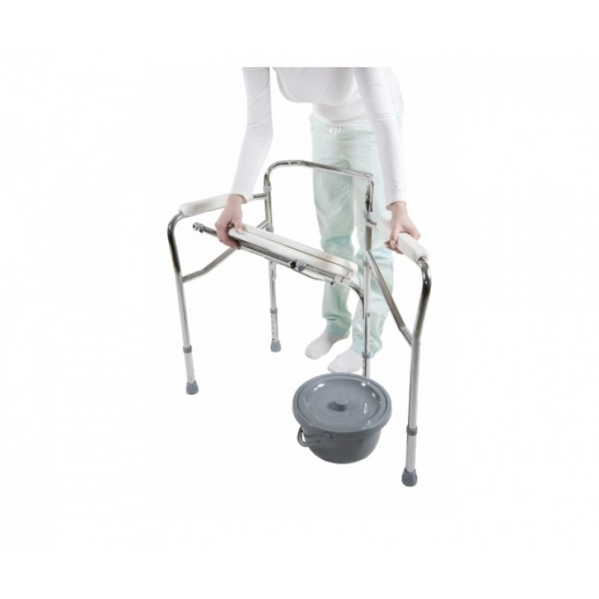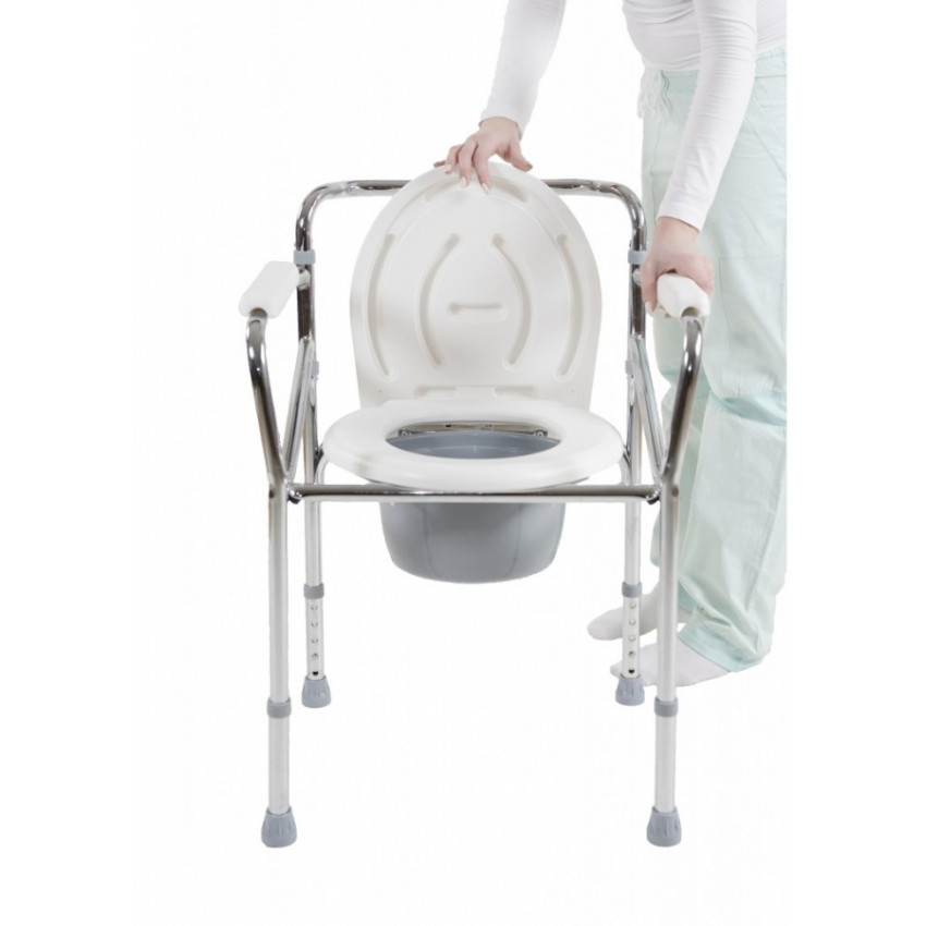 Toaletní křeslo je pomocné zařízení, které usnadňuje péči o ležícího pacienta, částečně ochrnuté, lidi na invalidním vozíku a také lidi s omezenou schopností pohybu. Křeslo se doporučuje osobám s dysfunkcí a sníženou pohyblivostí, kteří mají problémy s nenáročnou chůzí. Křeslo je vybaveno snadno vyjímatelnou toaletní nádobou pod sedadlem. Taktéž můžete umístit křeslo i nad záchodovou mísu WC bez vědra. Tato pomůcka usnadňuje vykonávání fyziologických činností a péči o uživatele. Ocelová konstrukce přenosného WC poskytne optimální oporu vašemu blízkému. Pevné opěrky rukou nabízejí bezpečné uchopení při sezení a vstávání. Každá nožička je výškově nastavitelná a má protiskluzovou gumovou špičku.