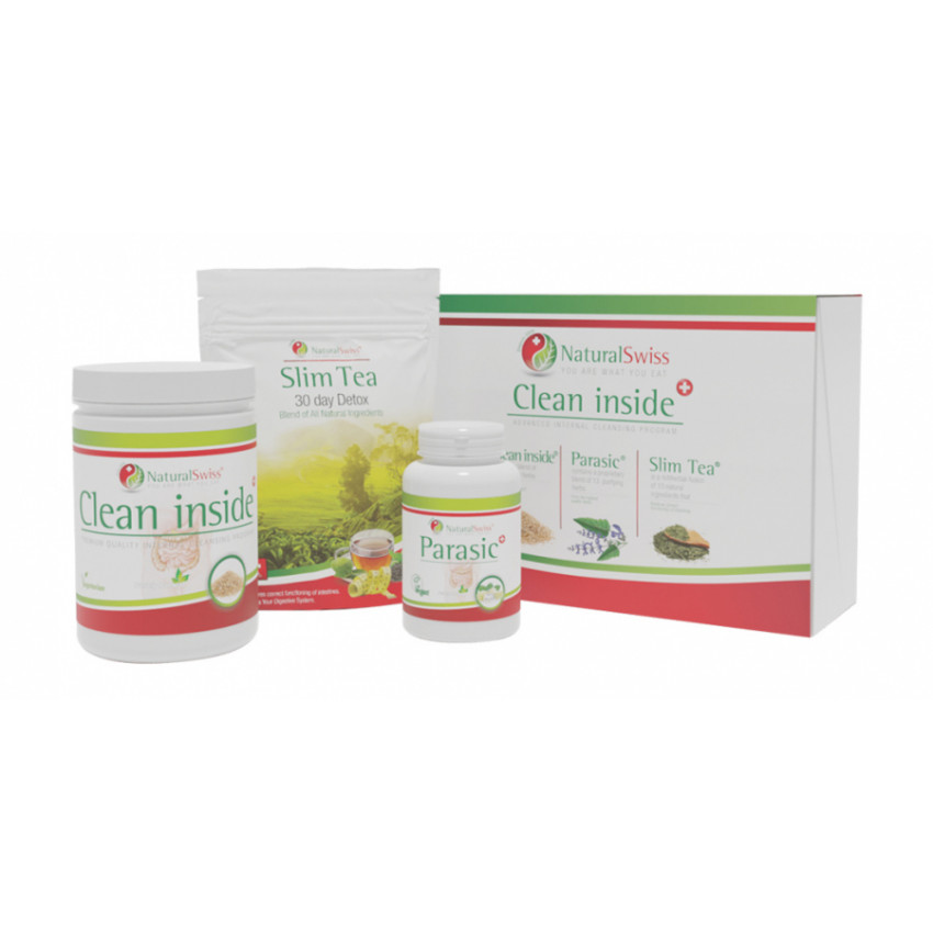 Program CleanInside je kombinací tří produktů, které obsahují pečlivě vybrané přírodní rostlinné složky, jimiž jsou Parasic kapsle, vlákninový přípravek CleanInside a léčivý čaj Slim Tea. Komplexní kúra na očistu střeva a detoxikaci od NaturalSwiss se skládá ze sady produktů programu Clean Inside a programu ToXiClean. Při vytvoření programu Clean Inside bylo naším cílem sestavit produktovou kombinaci, jejíž členové synergicky vyvíjejí a vzájemně posilují své prospěšné zdravotní účinky ve prospěch důkladné a přírodní očisty tlustého střeva.