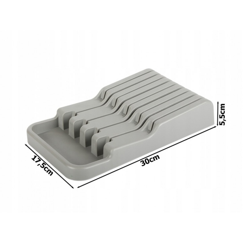 Organizér je navržen tak, aby šetřil místo a zároveň umožňoval jednoduchý přístup ke všem nožům. Díky svým kompaktním rozměrům se lehce vejde do zásuvky nebo na pracovní desku. Je přizpůsoben na uložení nožů s maximální délkou od 21,5 cm do 30 cm, což z něj dělá ideální volbu pro různé druhy nožů – od kuchařských až po menší univerzální nože.