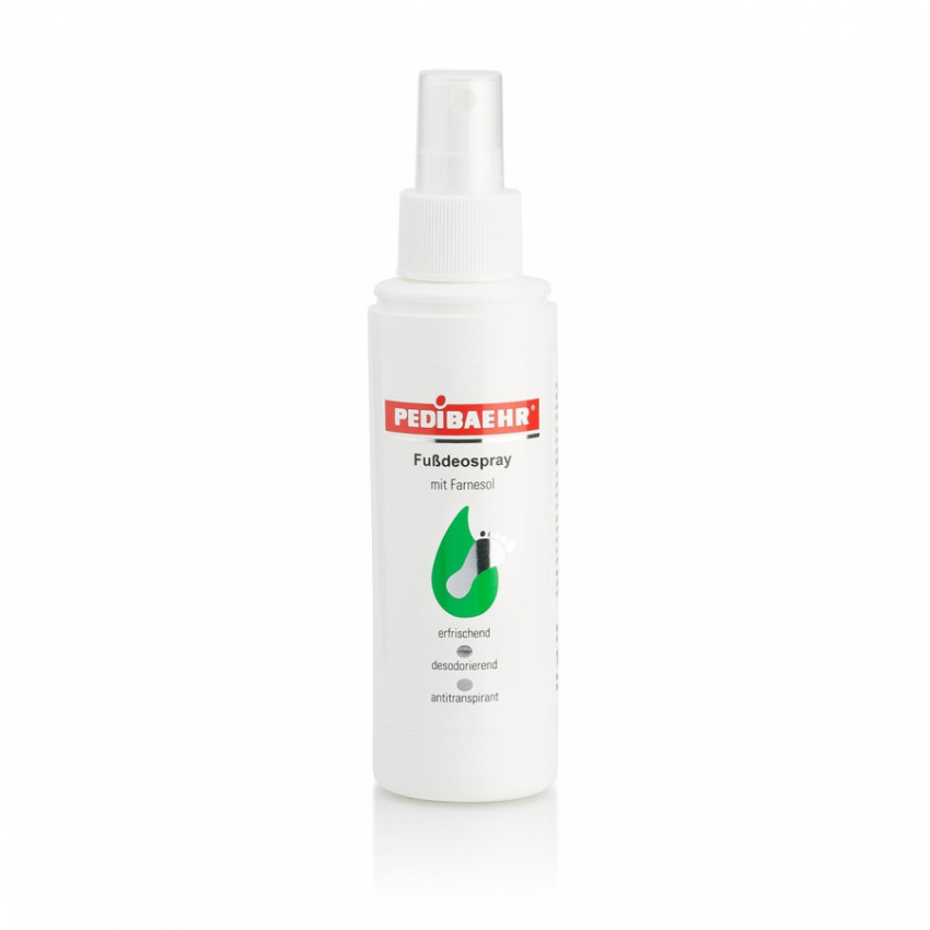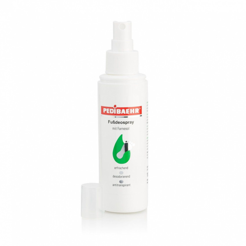 Osvežující sprej na nohy PEDIBAEHR s přírodní deodorizační složkou farnesol chladí a spolehlivě potlačuje zápach nohou s dlouhodobým efektem. Obsahuje také glycerin, hliník a chlorid. Farnesol přináší úlevu poceným nohám a navíc má protizánětlivé účinky. Vytváří příznivé prostředí na povrchu pokožky a má ochranný účinek proti mykózám. Sprej obsahuje allantoin a glycerin, který hydratuje, regeneruje a chrání pokožku. Po aplikaci nezanechává pocit mastnoty.