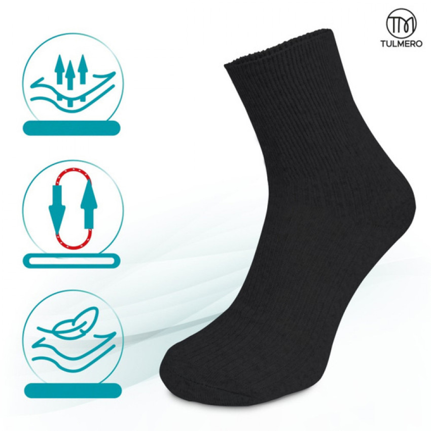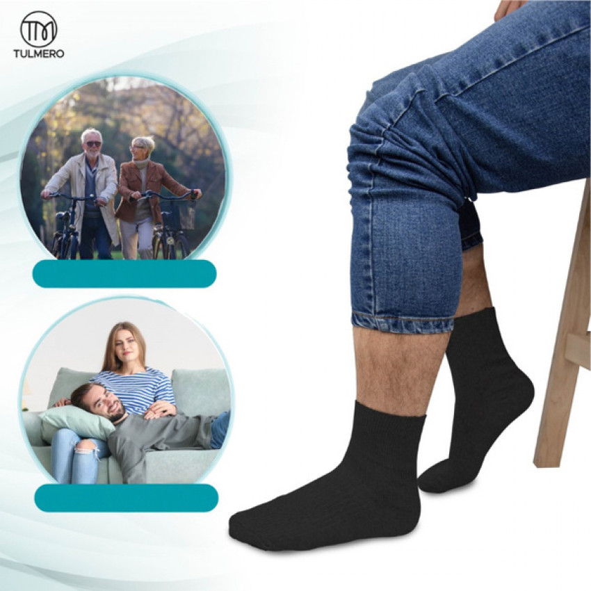 **Bezešvé ponožky Tulmero** jsou ideálním řešením pro muže, kteří hledají pohodlí, funkčnost a styl v jednom produktu. Tyto **pohodlné a měkké bavlněné ponožky** jsou speciálně navrženy na minimalizaci tlaku na nohy a lýtka, čímž umožňují **volný průtok krve** a zabraňují nežádoucímu sevření citlivých oblastí chodidel.