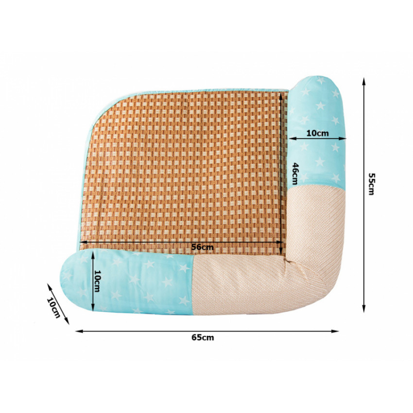 Pelíšek má velikost L, s délkou lůžka 55 cm a šířkou 65 cm.