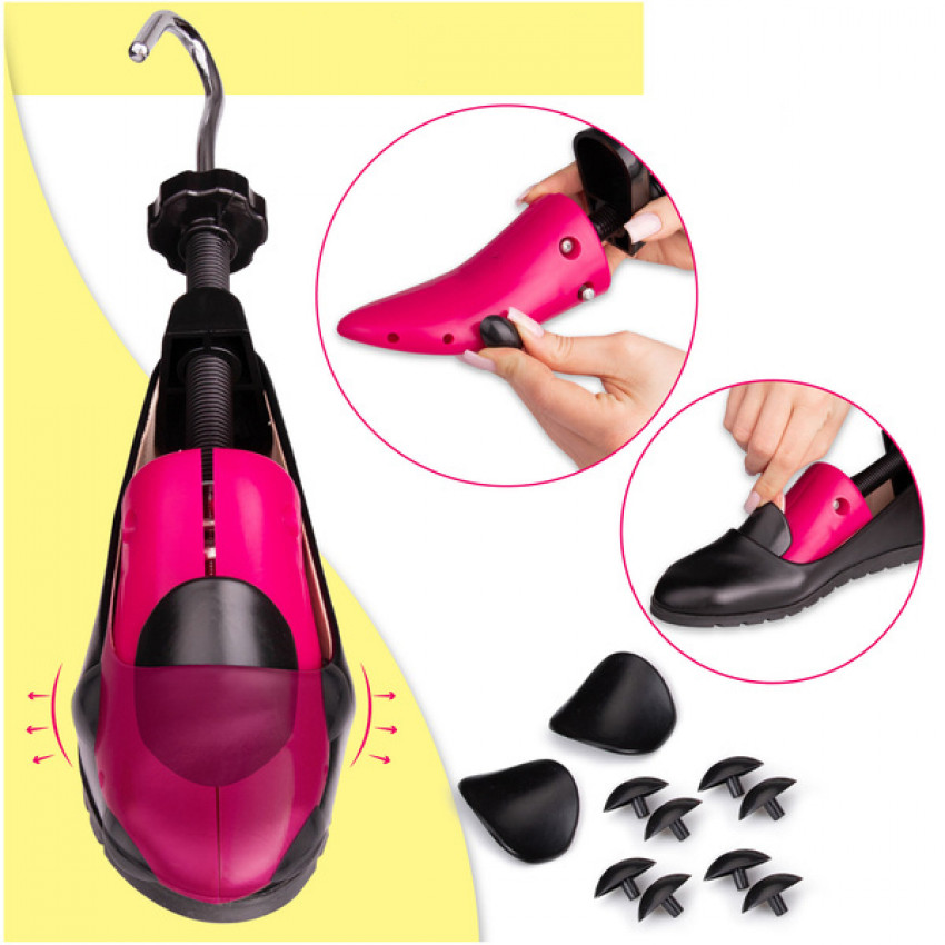 Vyroben z odolného plastu a kovu, zaručuje dlouhou životnost a spolehlivost. Součástí roztahovače jsou plastové nástavce pro cílené roztahování v místech, kde to obuv tlačí nejvíce – jako jsou klouby palců a malíčků.