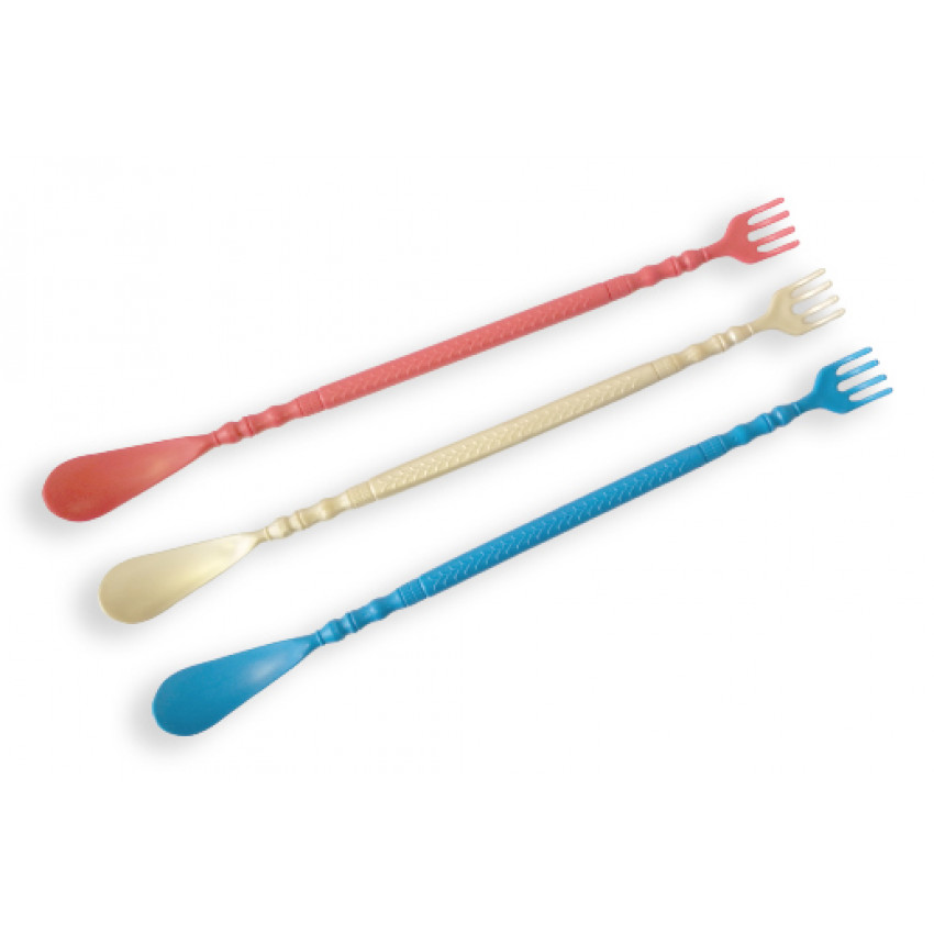 Masážní pomůcka má ergonomicky tvarované oválné tělo, které na jednom konci obsahuje masážní hřeben a na druhém praktický obuvník na nazouvání obuvi. Tato šikovná kombinace nástrojů usnadňuje nejen obouvání, ale také poskytuje rychlou úlevu od bolesti nebo svědění v těch nejméně přístupných místech na vašich zádech.