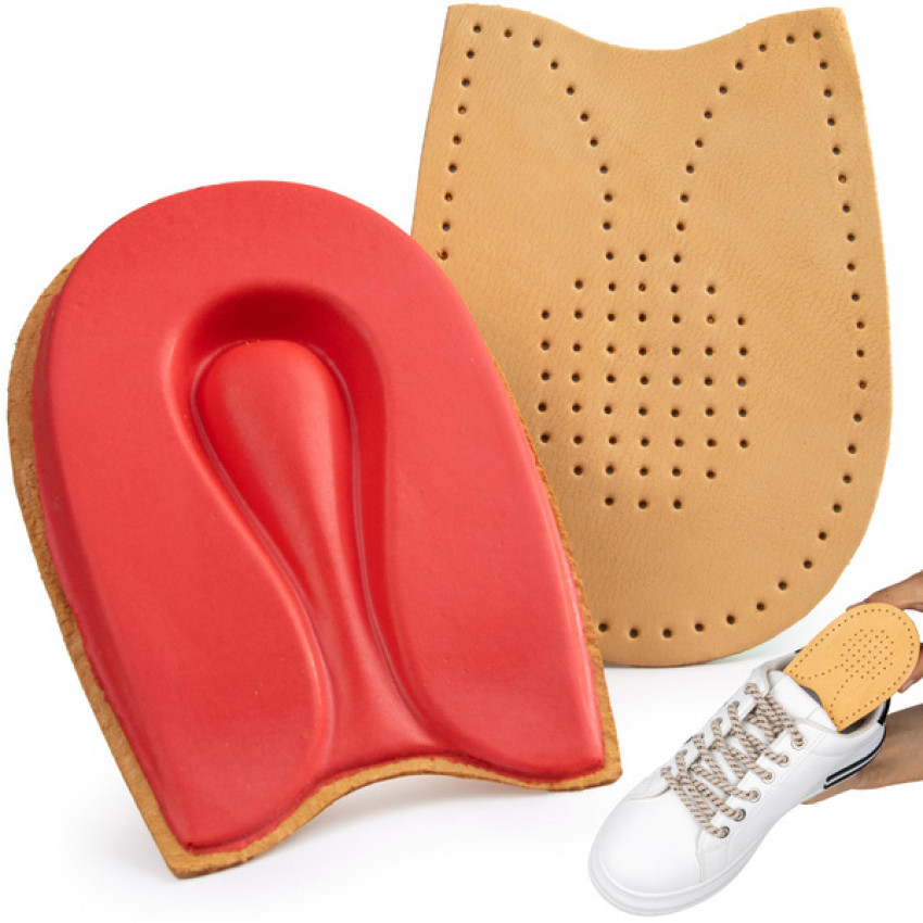 Naše kožené tlumící vložky ComfortHeel představují dokonalé řešení pro všechny, kteří bojují s bolestí paty, patními ostrohami, nebo plantární fasciitidou. Vyrobené z prémiové přírodní kůže a vysoce kvalitní latexové pěny, tyto vložky jsou určeny tak, aby poskytovaly maximální pohodlí a efektivní tlumení při každém kroku. Nabízíme je ve třech stupních tvrdosti - měkké, střední, a tvrdé - umožňujíc tak dokonalé přizpůsobení vašim individuálním potřebám.