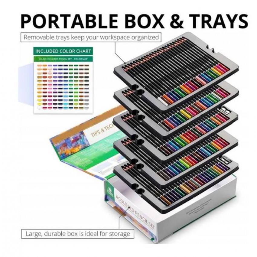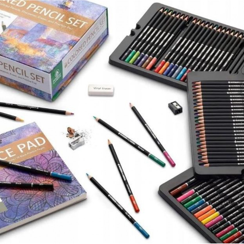 Profesionální sada na kreslení pro nováčky nebo zkušené profesionály. Začněte kreslit hned, jak otevřete balík. Sada se 10 stránkovým skicářem 100g papírem. Sada obsahuje 120 kusů profesionálních barevných tužek přesně a předem nabroušených s protiskluzovou úpravou.