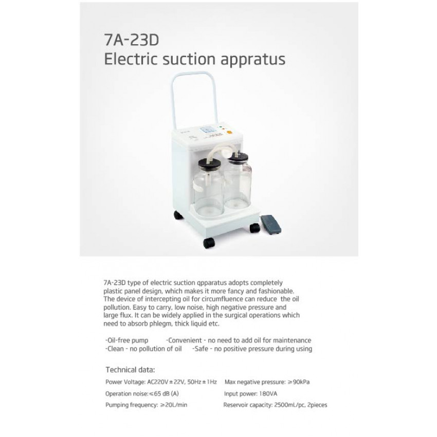 Přenosná elektrická odsávačka 7A-23D od renomovaného výrobce Yuwell s objemem nádob 2 x 2500 ml.