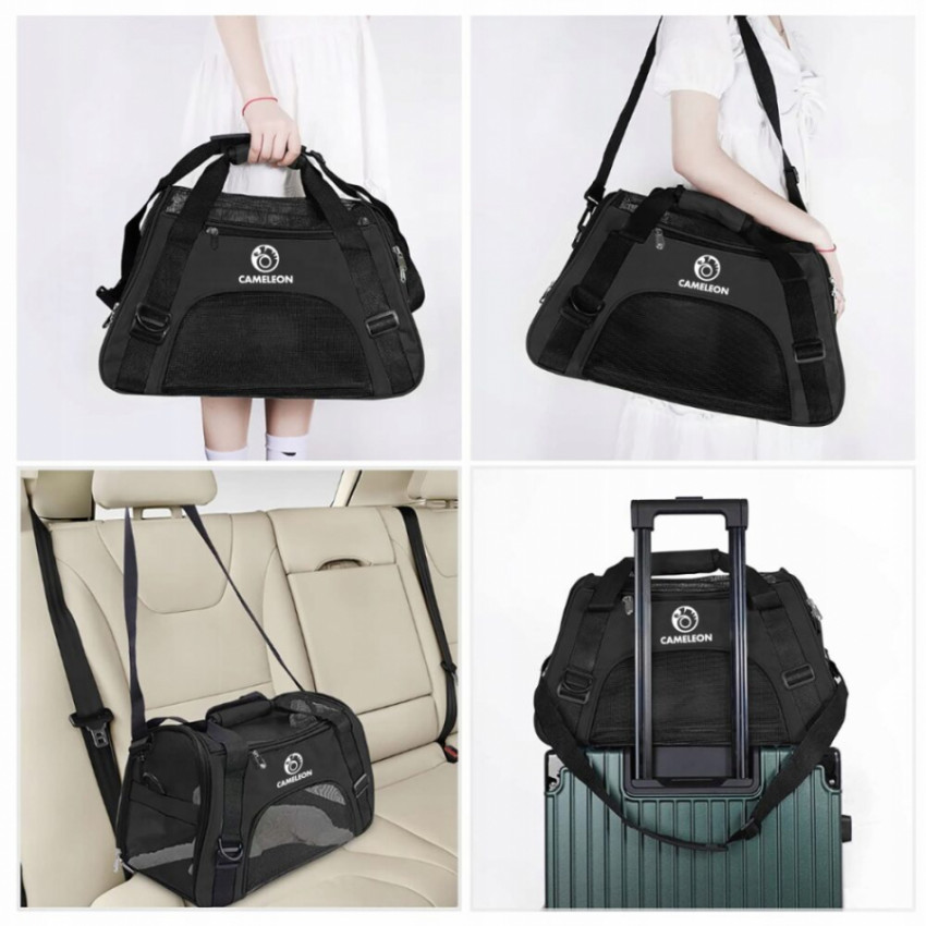 Tato taška má rozměry 47 cm x 28,5 cm x 25 cm, díky čemuž je určena na přenášení koček a psů malých plemen. Skvěle se hodí také jako cestovní taška pro králíky, morčata nebo potkany. Díky této tašce bude cesta pohodlná nejen pro vašeho mazlíčka, ale i pro vás. Pohodlné rukojeti a možnost uchycení ramenního popruhu vám umožní tašku nejen nosit, ale také připevnit na různá místa. Bez ohledu na to, jak cestujete - autem, vlakem nebo letadlem.