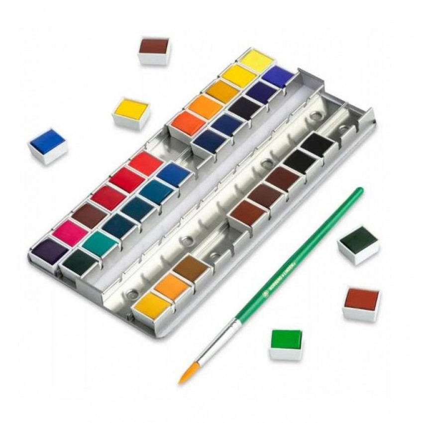 Prémiová sada na akvarelové malování je ideální pro začátečníky i profesionální výtvarníky. Obsahuje 36 zářivých akvarelových barev, dřevěný štětec, dva plnící vodní štětce a 12-stránkový blok profesionálního 300g akvarelového papíru.