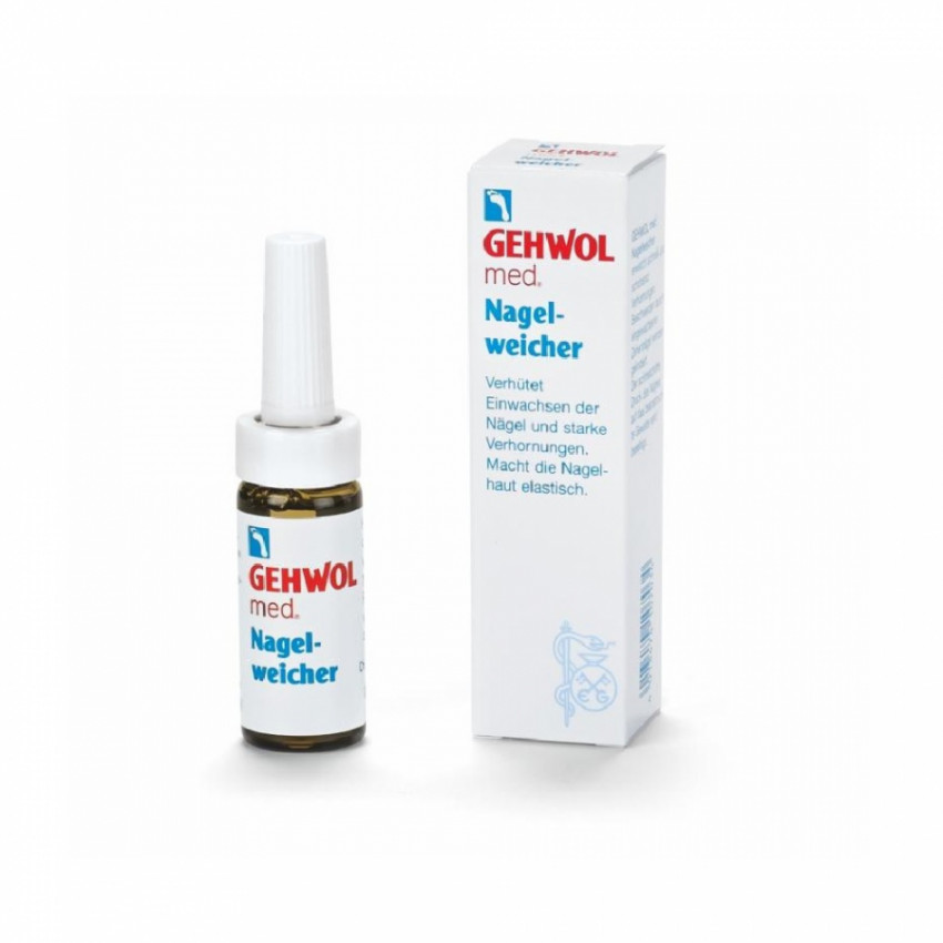GEHWOL med Nagel-weicher zmäkčuje ztvrdlou pokožku pod nehtem a v okolí nehtového lůžka, čímž pomáhá předcházet zarůstání nehtů a snižuje bolestivost. Pravidelným používáním se zlepšuje flexibilita nehtů a snižuje riziko jejich deformace.