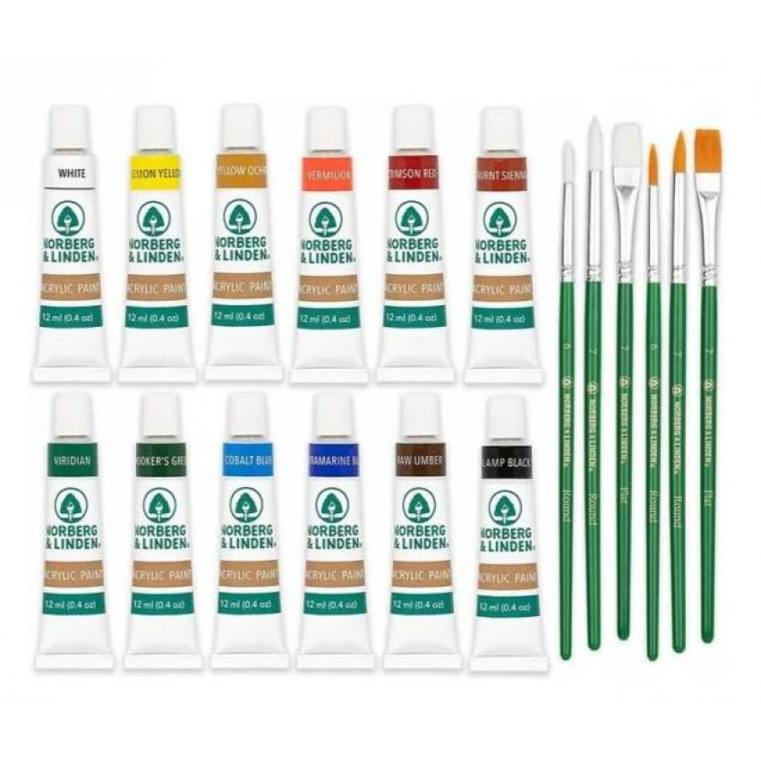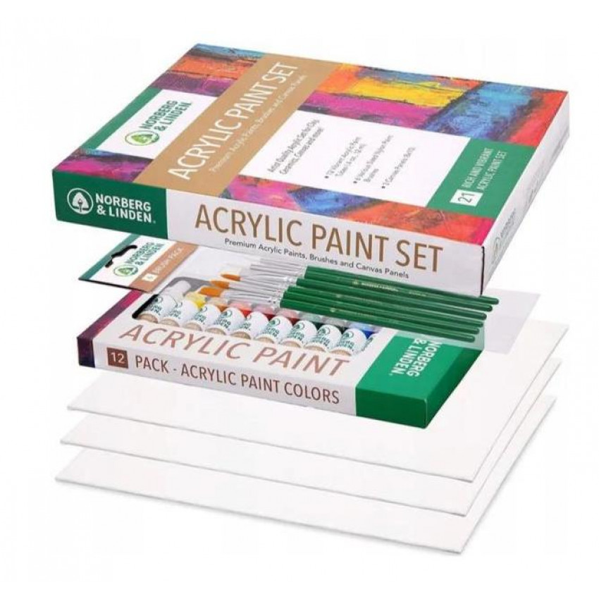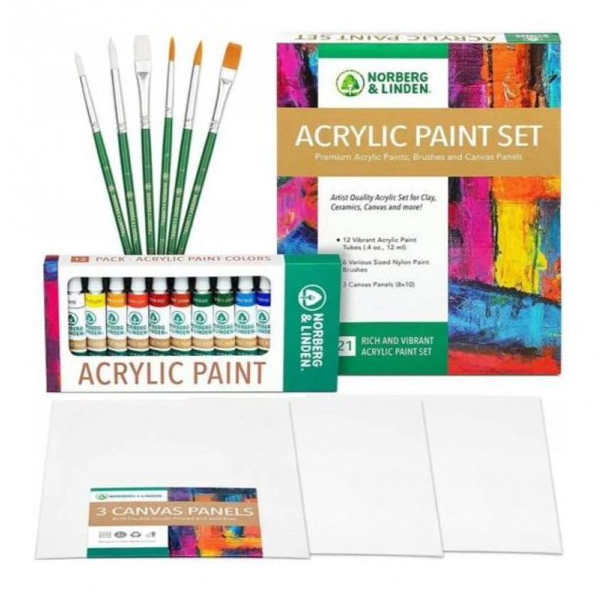 Profesionální prémiová akrylová umělecká sada, která obsahuje vše, co potřebujete. Tato sada je dodávána se sadou 6 jemně upravených štětců profesionálního stylu, 3 panely na malování vyrobené z prvotřídní bavlněné tkaniny a 12 tubami vysoce kvalitní akrylové barvy, pro dospělé a děti, začátečníky i profesionály, připravené k akci, přátelské k cestování.