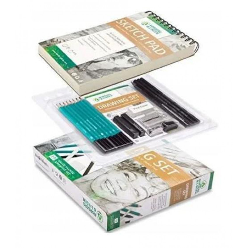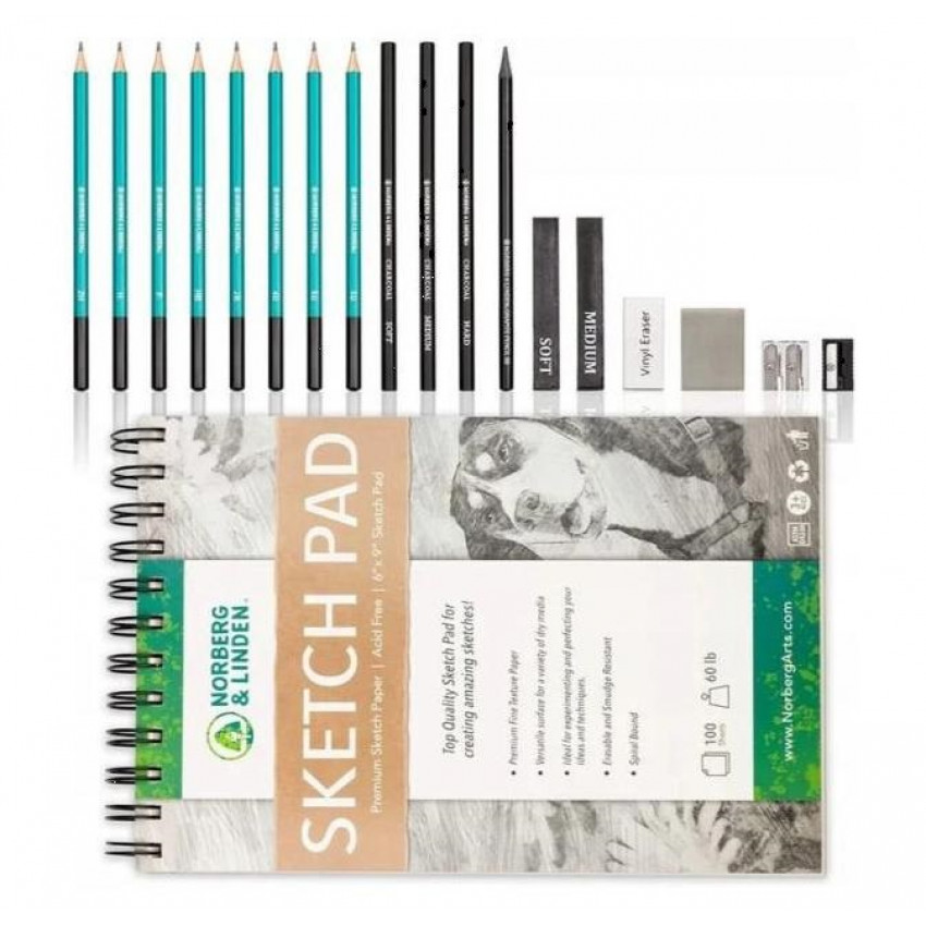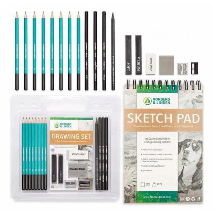 Profesionální sada na kreslení pro nováčky nebo zkušené skicáře. Začněte kreslit hned, jak otevřete balík. Sada se 100 stránkovým skicářem střední gramáže, profesionálním skicářským papírem bez šmouh, připraveným na akci. Sada obsahuje přesně a předem naostřené tužky s protiskluzovou úpravou.