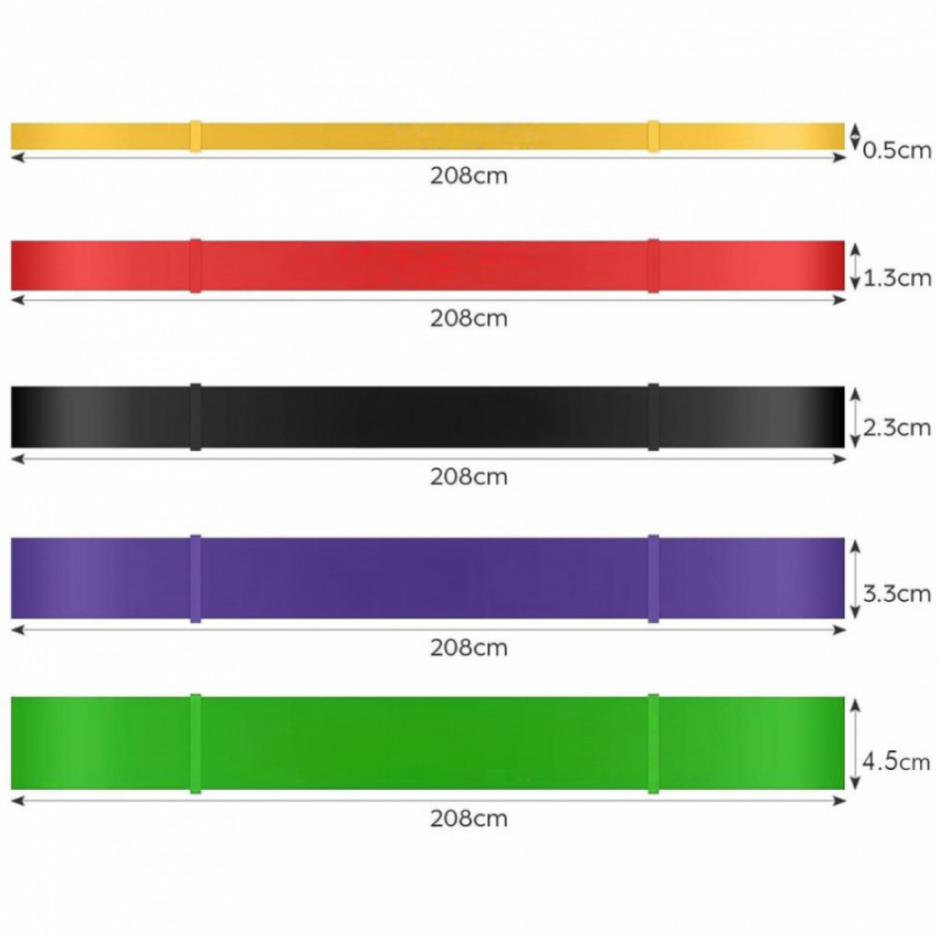 Zažijte komplexní trénink s využitím 5 odporových gum, které vám umožní přizpůsobit zátěž podle potřeby a procvičit celé tělo.