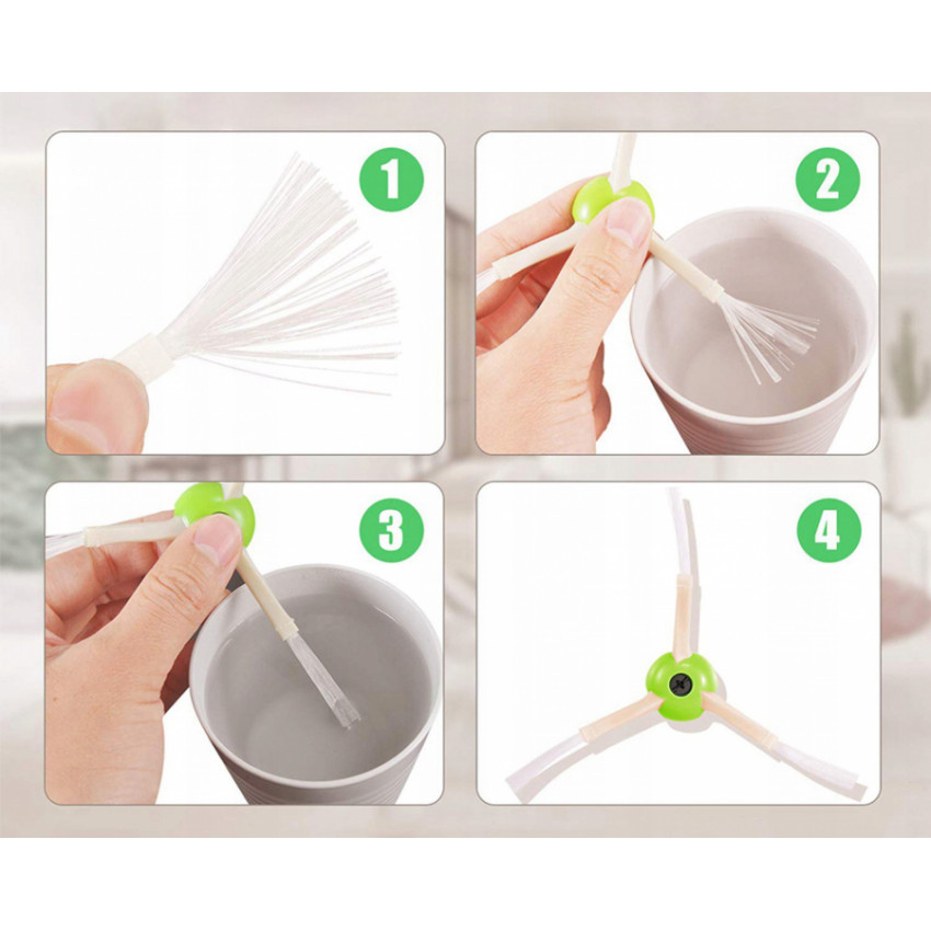 Hlavní kartáče s bočními kartáči vytvoří mimořádně přesné spojení zajišťující důkladně čistý byt. Poradí si s prachem, drobečky, vlasy a jinými malými nečistotami. Díky speciálnímu hřebenu připevněnému k sadě se můžete ujistit, že štětiny jsou vždy čisté a nelepí se.