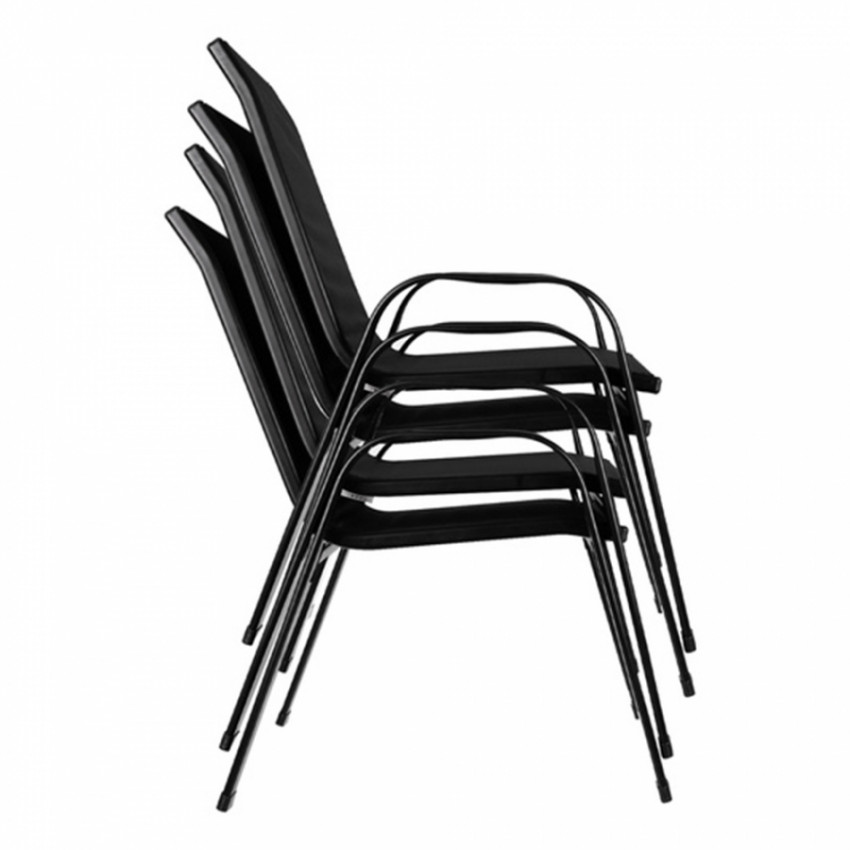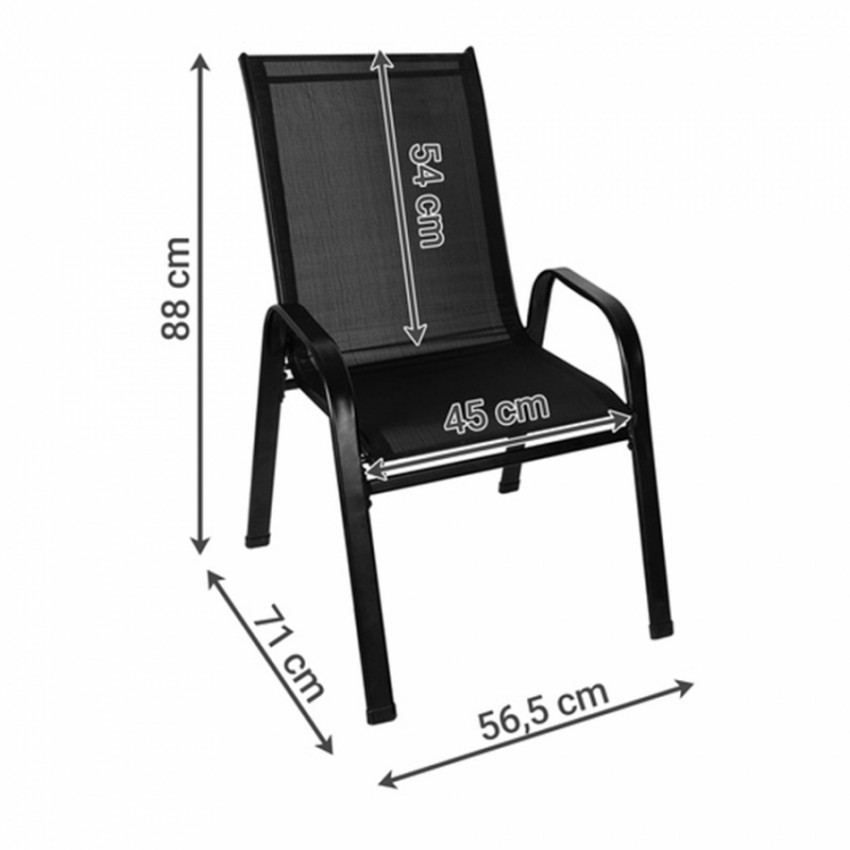 Odolné, pohodlné a stylové řešení pro váš exteriér! Tato sada 4 zahradních židlí je navržena tak, aby vám poskytla maximální pohodlí a dlouhou životnost. Kombinace ocelového rámu s práškovým nástřikem a odolné textilní výplně zaručuje stabilitu a odolnost vůči povětrnostním vlivům. Židle jsou ideální k použití v zahradě, na terase, balkoně či chatě.
