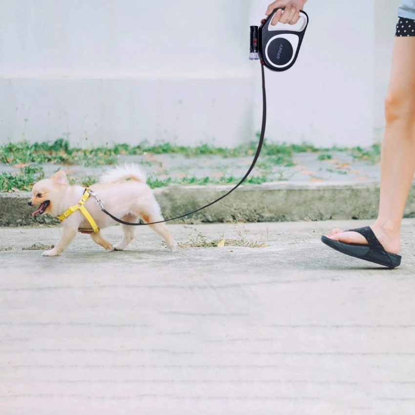 Jdete venčit pejska večer a bojíte se, že už je tma? Nevadí, pokud si pořídíte toto vodítko, už tyto problémy nebudete muset řešit! Toto samonavíjecí vodítko obsahuje LED baterku. Součástí je také tlačítko na zajištění vodítka podle toho, zda chcete mít pejska nakrátko či volně. Svítidlo je možné volně vysunout a můžete používat jen samonavíjecí vodítko. Je jen na Vás, co v danou chvíli při venčení budete potřebovat. Ve všech případech však budete venčit s lehkostí, protože vodítko není vůbec těžké, ba naopak!