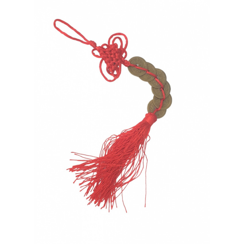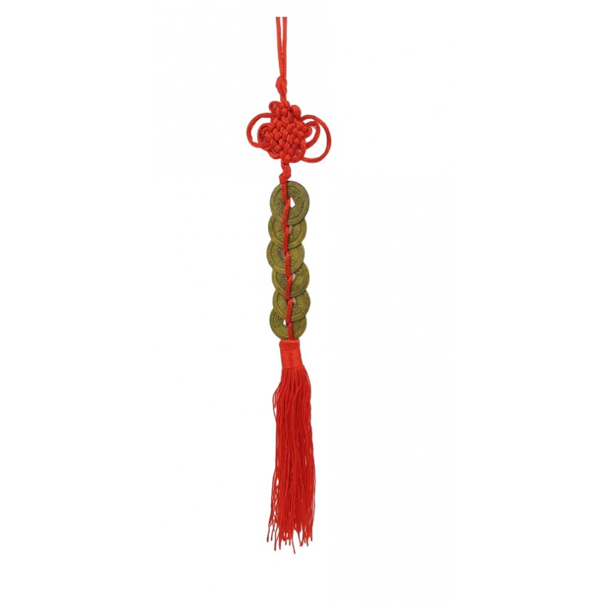 Šest kovových čínských mincí patří k nejpoužívanějším symbolům feng shui. Kombinace čtvercového středu a kulatého tvaru mince jsou vyjádřením nebes a země, které lidi na zemi spojuje s vesmírem. Už ve staré Číně věřili, že mince jsou nejlepším podporovatelem a aktivátorem prosperity. Navíc spojení červenou stužkou příznivé energie ještě více podporuje.