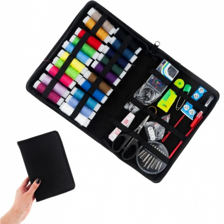 Pohodlné pouzdro na uložení všech vašich věcí. Šikovné pouzdro vám pomůže kontrolovat nepořádek a usnadní vám práci. Flexibilní gumičky udrží příslušenství uvnitř bez obav ze ztráty jakékoli části. V sadě najdete např. nitě, jehly, thimbly, nůžky, lupu, pastelky a mnoho dalšího.