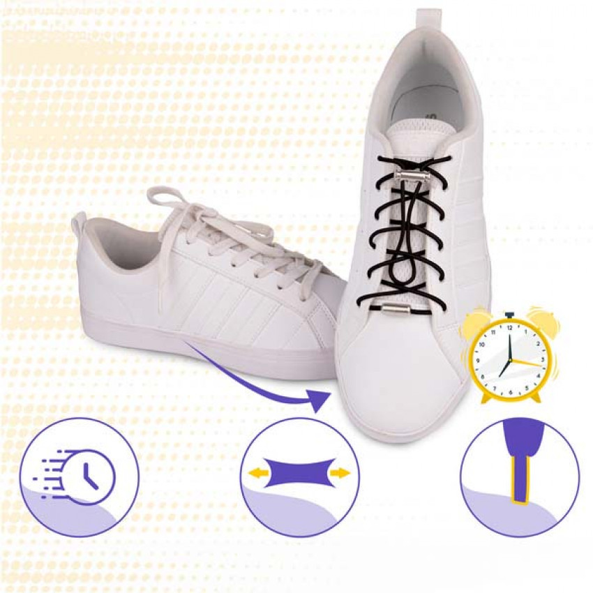 Zapomeňte na rozvazování tkaniček s těmito elastickými tkaničkami s kovovými přezkami, které se navléknou jen jednou a zůstanou pevně na svém místě. Vyrobeny z vysoce kvalitní elastické gumy, poskytují vysokou pevnost v tahu a dlouhou životnost.