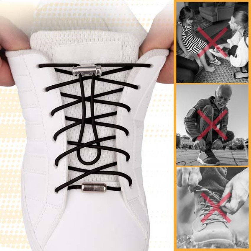 Máte problém s rozvazováním šňůrek nebo si vaše dítě ještě neví zavázat boty samo? Nechte tyto starosti za sebou s našimi elastickými šňůrkami s kovovými prackami! Umožňují maximální pohodlí a úsporu času, tyto šňůrky se navléknou jen jednou a zůstanou pevně na svém místě bez nutnosti je znovu zavazovat.
