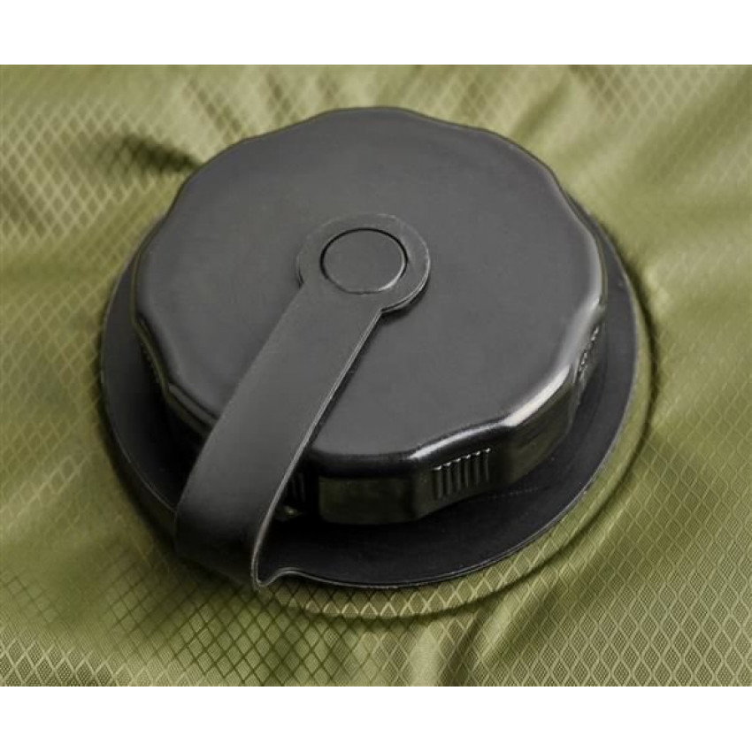 Kempingová sprcha je zajištěna gumou, která zabraňuje úniku vody - nalévání vody je mimořádně snadné. Kromě toho je kork na popruhu, takže nehrozí jeho ztráta.