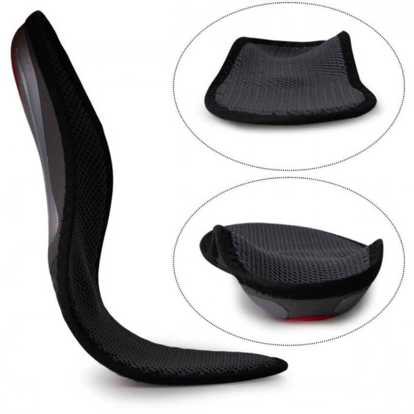 Ortopedické vložky jsou vybaveny profilovanou podporou pro podélní klenbu chodidla, která nejenže chrání před plochými nohami, ale také zmírňuje tlak na patní ostrohu díky měkké vrstvě umístěné přímo pod patou. Tato unikátní kombinace materiálů zajišťuje, že vaše nohy zůstanou v pohodlí a bez bolesti i během dlouhodobého zatížení.
