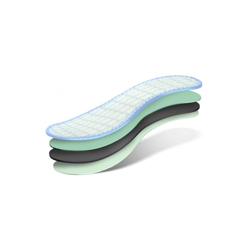 Pohodlné, sportovní a hygienické stélky do obuvi zajišťující pocit svěžesti při běžné a intenzivní fyzické aktivitě. Vyrobené z bavlněného úpletu s bambusovými vlákny a třech vrstev latexové pěny s přírodním alumem a aktivním uhlím. Latexová pěna dodává pocit měkkosti, zvyšuje pohodlí při chůzi.
