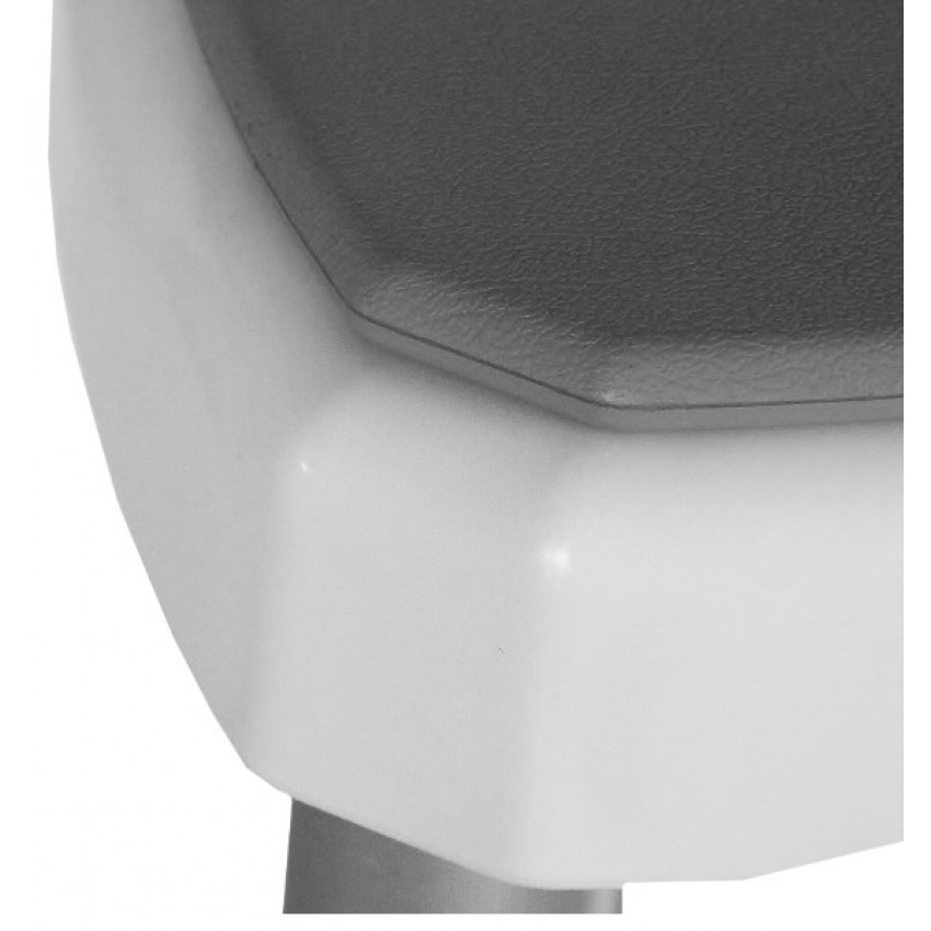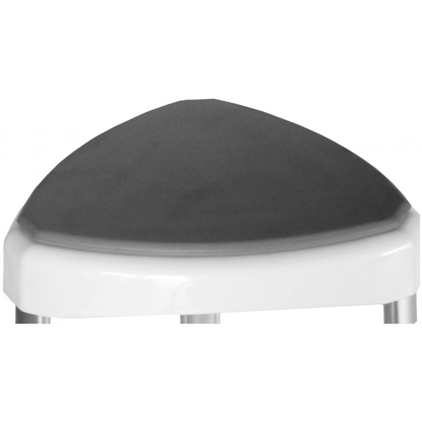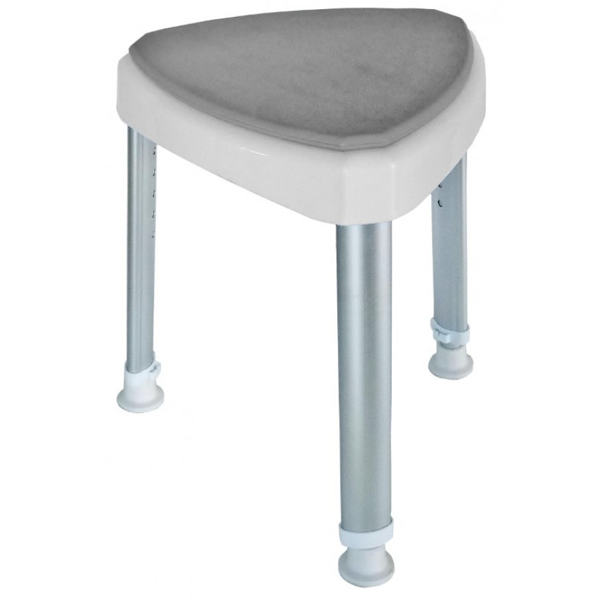 Výškovo nastavitelná sprchová stolička. Praktické a estetické řešení, zvyšuje pohodlí při každodenních hygienických činnostech. Sprchová stolička trojúhelníkového tvaru vybavená měkkým překrytím, které zvyšuje pohodlí při sezení. Díky trojúhelníkovému tvaru ušetříte místo v koupelně nebo ve sprše.