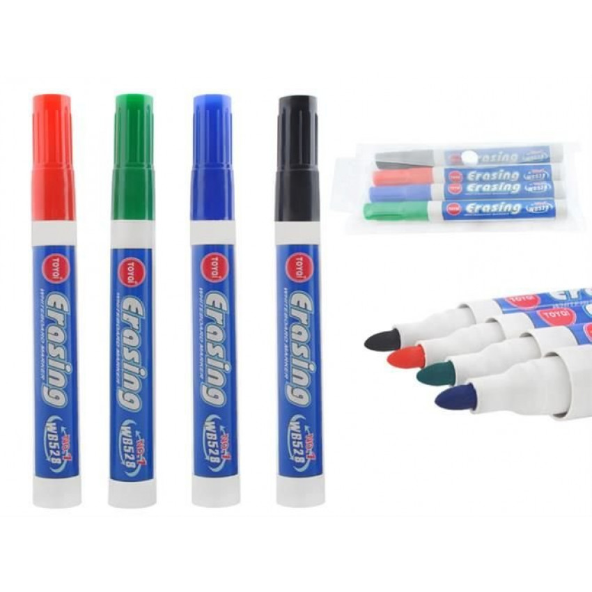 Praktické, rychleschnoucí fixy v krabičce. Snadno odstranitelná z povrchu tabule, nezanechávají na ní žádné trvalé nežádoucí stopy. Určené pro bílé tabule, ale dají se použít i na jiné povrchy, například fólii nebo sklo.