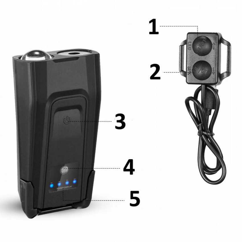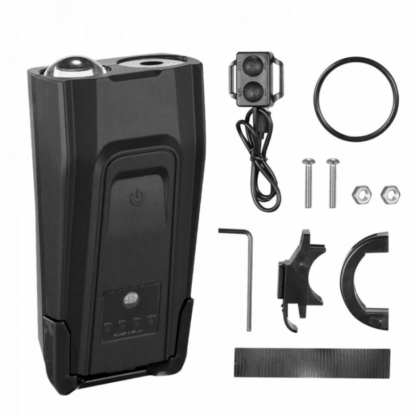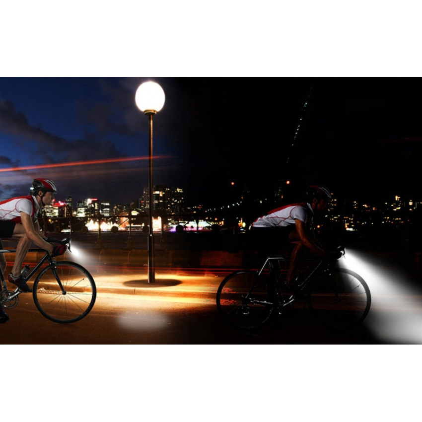 Vodotěsná cyklistická lampa se světelným výkonem až 800 lumenů s objemnou baterií zajišťuje bezpečnost a komfort jízdy na kole po setmění. Integrované LED diody T6 poskytují vynikající osvětlení za jakýchkoli podmínek - díky nim bude jízda na kole v noci nebo v případě omezené viditelnosti pohodlná a bezpečná. Lampa se dá z kola jednoduše vyjmout a nabíjet pomocí USB kabelu. Jeho pouzdro je vodotěsné, takže zařízení lze používat i v dešti. Zařízení je také velmi hlasité - až 120 dB. S jeho pomocí se vyhnete mnoha nebezpečným událostem.