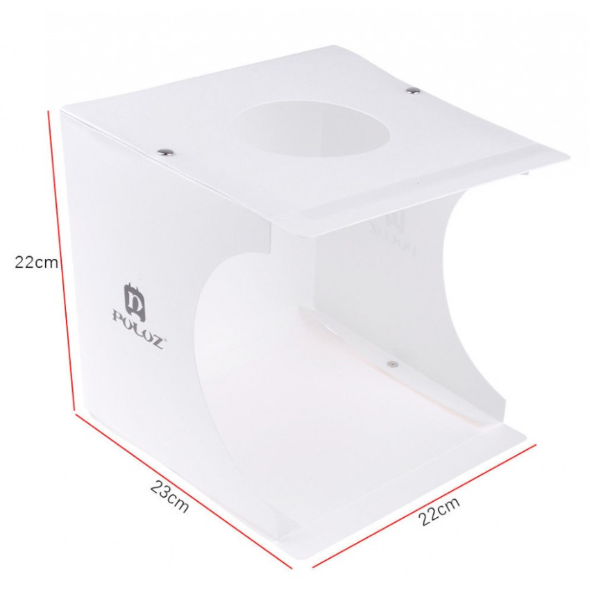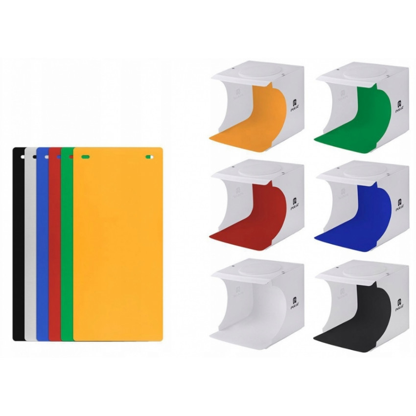 Ideální pro domácí fotografování malých předmětů nebo makrofotografii, tento skládací fotostan je snadno sestavitelný a dodává se včetně odnímatelných barevných pozadí.