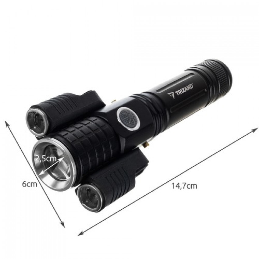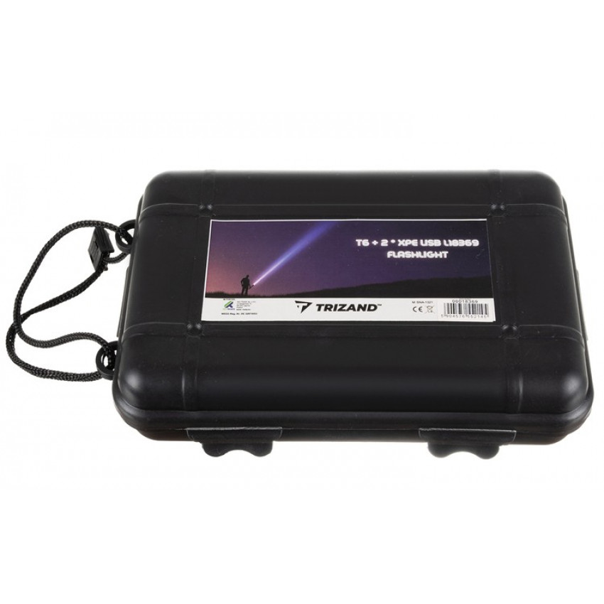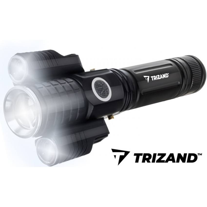 Svítilna Trizand má 1 LED T6 a 2 profesionální a extrémně výkonné CREE XPE LED. Svítilna je napájena 1 nabíjecí baterií, která je součástí balení a má USB nabíjecí kabel.