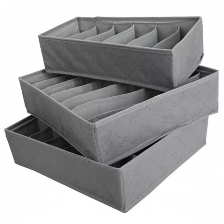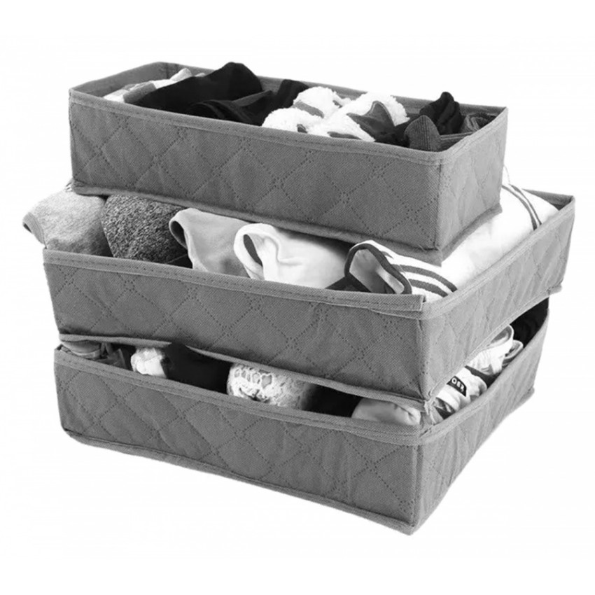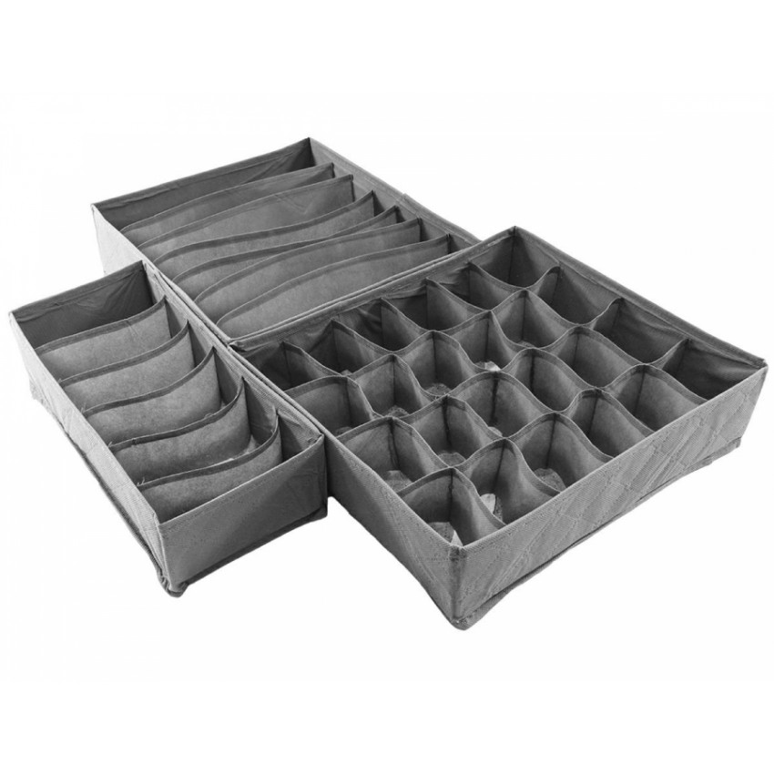 Sada 3 organizérů. Přihrádky vám umožní uspořádat si sbírky kravat, ponožek, opasků a spodního prádla jednoduchým, praktickým a levným způsobem. Sada obsahuje tři organizéry různých velikostí, počtu přihrádek a aplikací. Jsou vyrobeny z pevného vzduchopropustného materiálu. Otevřený design umožňuje rychlý přístup k oblečení. Možnost skládání umožňuje další úsporu místa, když jednu z přihrádek nepoužíváte.