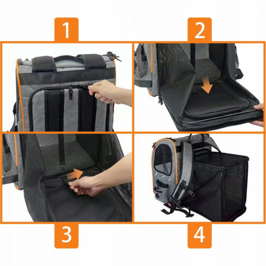 Díky velmi jednoduché demontáži částí batohu je ještě efektivnější. Dodatečný prostor bude užitečný na přepravu větších zvířat nebo jako výběh pro menší. Batoh je dokonalý i jako cestovní taška pro králíky, morčata nebo potkany.