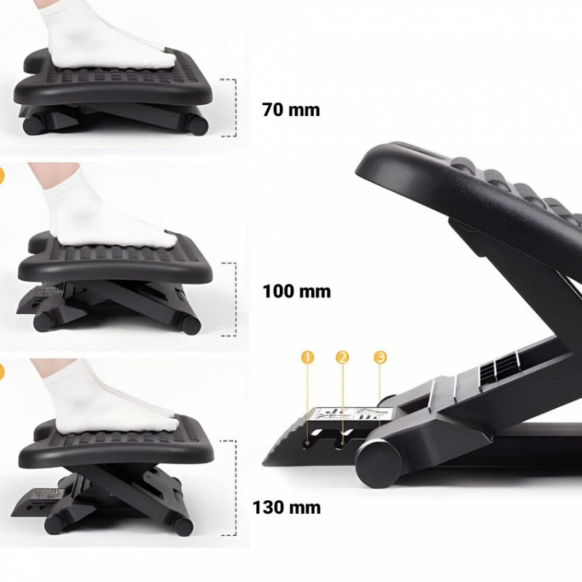 Ergonomická podnožka pod stůl s masážní funkcí – variabilní sklon a výška