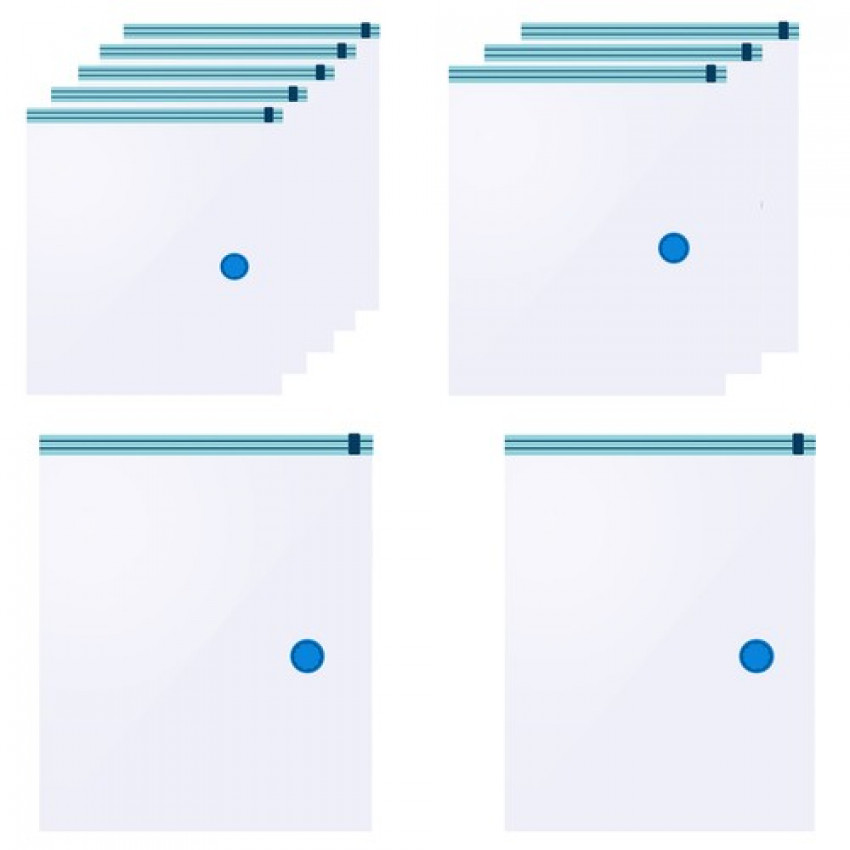Vakuové sáčky zaručují efektivní úsporu místa až do 80%. Pokud chcete uskladnit oblečení, které v určitém ročním období nepotřebujete, musíte mít dostatek místa – a toto místo zabírá především hodně vzduchu. S těmito vakuovými úložnými sáčky můžete vzduchotěsně a prostorově úsporně uskladnit textilie, oblečení, hračky a ložní prádlo a ochránit jejich obsah před prachem, vlhkostí, pachy a moly. Abychom ochránili textilie, musíte je ve vakuovém sáčku naskládat na sebe a vysát vzduch pomocí vysavače přes speciální ventil. Vakuové sáčky jsou vhodné k opakovanému použití.