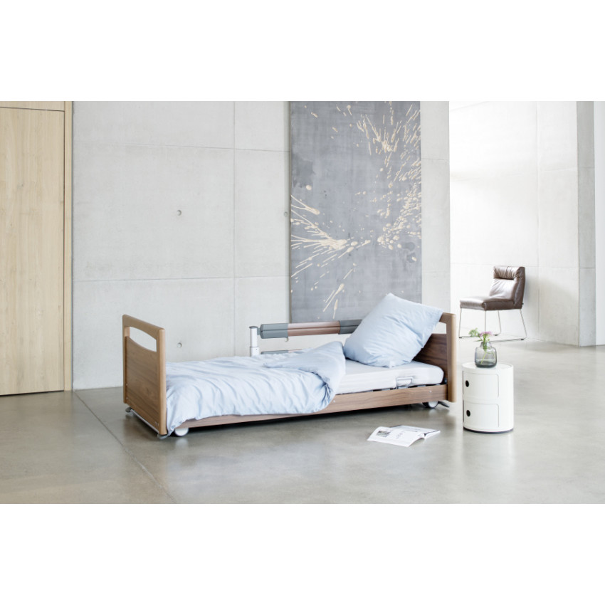 Snížení rizika pádu a zvýšení bezpečnosti jsou hlavními výhodami této elektrické postele. Její výška se dá snížit až na 15 cm, což snižuje rychlost pádu a sílu nárazu až o 67 %. To zajišťuje mimořádně efektivní prevenci následků pádů.