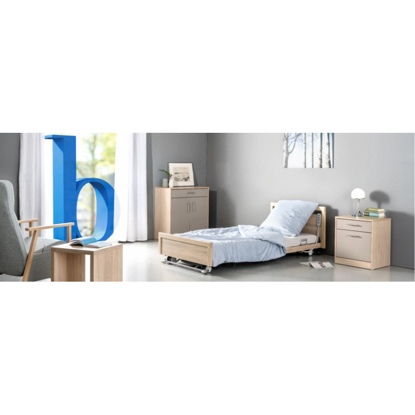 fyzická úleva díky kinematické práci přátelské k zádům v ideální výšce; psychologická úleva v důsledku snížení omezujících opatření; více času na péči díky rozsáhlému standardnímu vybavení; integrované prodloužení lůžka a boční kolejnice bez nástrojů pro rychlé a individuální přizpůsobení se velikosti těla klienta; různé nastavení ležící plochy jako mobilizační pomůcka.