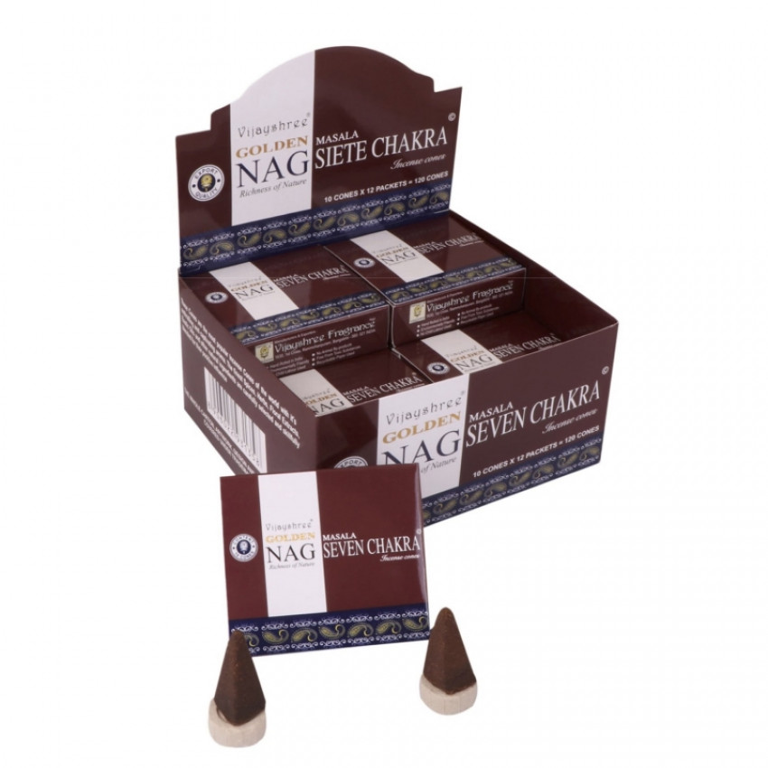 Harmonizující sílu VIJAYSHREE GOLDEN - NAG SEVEN CHAKRAS Masala vonných kuželů můžete objevit i vy. Tyto kužely jsou synonymem pro uvolnění a čistotu mysli. Ručně vyrobené v srdci Indie, tyto kužely jsou směsí nejkvalitnějších koření, bylin, květinových extraktů a exotických olejů. Jejich jedinečná aroma umožňuje podporovat uvolnění, zmírnit stres a harmonizovat sedm čaker. Bez použití toxických látek a s důrazem na ekologickou udržitelnost, VIJAYSHREE GOLDEN nabízí nejen krásné vůně, ale i čisté svědomí.