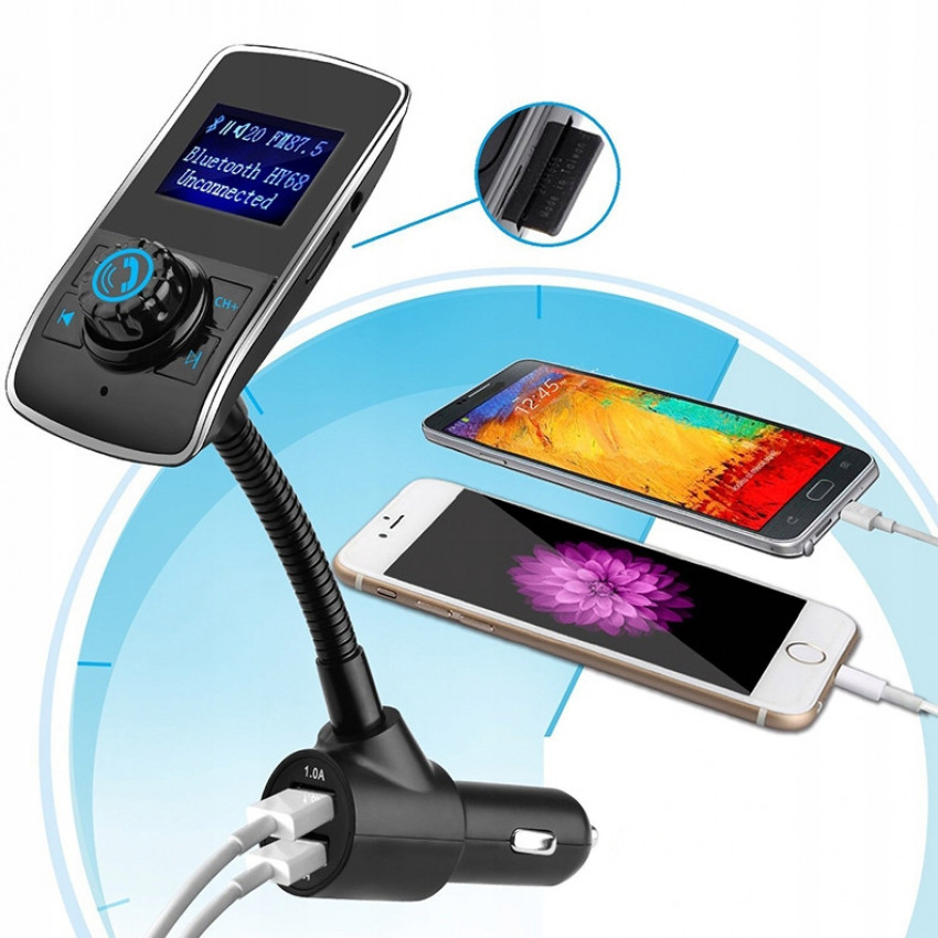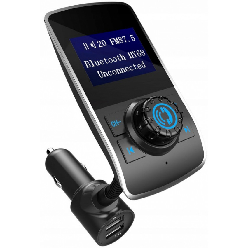 FM vysílač / Bluetooth handsfree sada s podporou paměťových karet microSD, AUX vstupem, 1,44" displejem a dvěma USB nabíjecími porty.