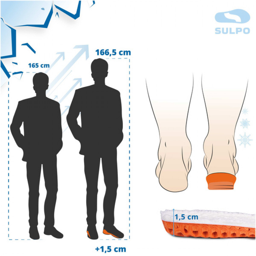 Získejte nejen pár centimetrů navíc, ale také pocit pohodlí a tepelný komfort v chladnějších dnech s našimi inovativními vložkami. Zvyšují výšku o 15 / 25 / 35 mm a poskytují příjemné teplo uvnitř bot.