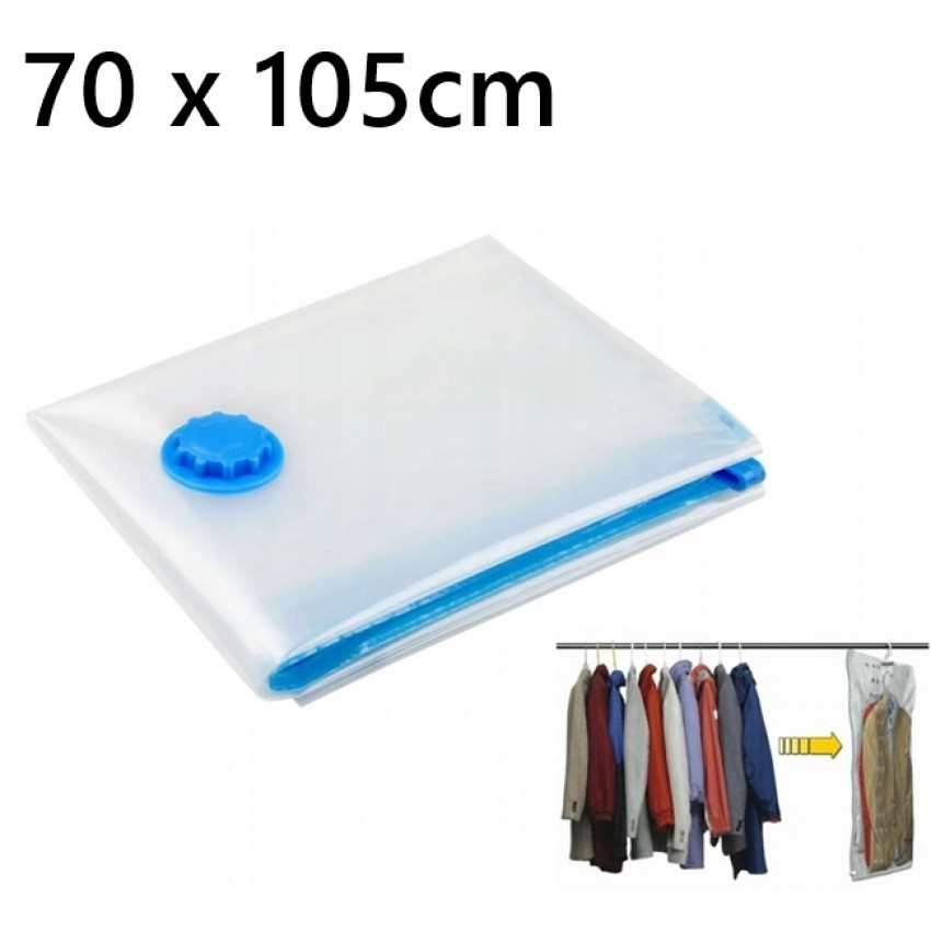 Visící vakuový vak je určen pro šetření prostoru na věšákových tyčích pro sezónní oděvy jako větrovky, kabáty, ale i jiné objemnější věci, které zabírají velký prostor na věšákové tyči, můžete s pomocí visícího vakuového obalu uskladňovat s podstatně menším nárokem na prostor. Velmi jednoduchý způsob použití. Vakuové vaky chrání před vlhkostí, moly, plísněmi, hmyzem, pachy, alergeny. Na vysátí vzduchu z vakuového vaku postačuje klasický vysavač.