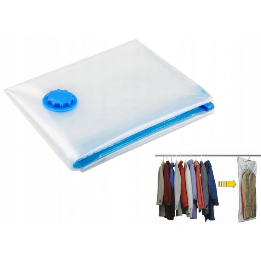 Závěsný vakuový vak je určen pro šetření prostoru na věšákových tyčích pro sezónní oděvy jako větrovky, kabáty, ale i jiné objemnější věci, které zabírají velký prostor na věšákové tyči můžete za pomoci závěsného vakuového obalu uskladňovat s podstatně menším nárokem na prostor. Velmi jednoduchý způsob použití. Vakuové vaky chrání před vlhkostí, moly, plísněmi, hmyzem, pachy, alergeny. Na vysátí vzduchu z vakuového vaku postačuje klasický vysavač.
