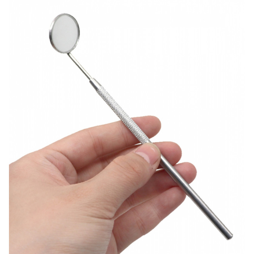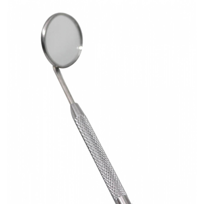 Profesionální zubní zrcadlo. Povinná výbava každého zubaře. Vyrobeno z pevné nerezové oceli. Dlouhá rukojeť s hrubým úchopem usnadňuje manévrování při práci. Vyměnitelné zvětšovací zrcadlo umožňuje důkladnou kontrolu ústní dutiny a stavu chrupu.