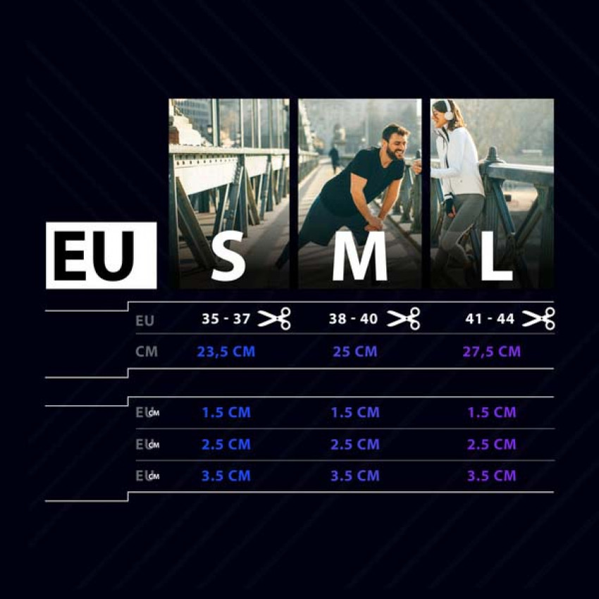Naše vložky jsou dostupné ve třech velikostech: S (35-37), M (38-40) a L (41-44). Vyberte si velikost, která nejlépe vyhovuje vaší velikosti obuvi.